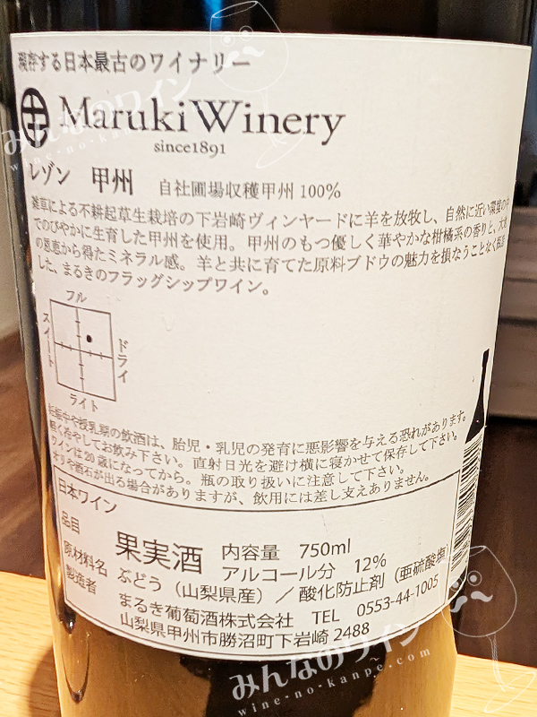 「レゾン・甲州・2022・下岩崎ヴィンヤード収穫」は、羊とともに育った葡萄を使用して細部までこだわって作り上げられた、まるき葡萄酒のフラッグシップワインです。