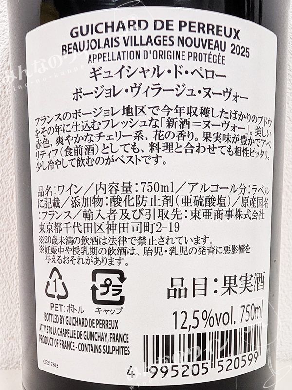ギュイシャル・ド・ペロー・ボージョレ・ヴィラージュ・ヌーヴォー・2025 補足情報を見る