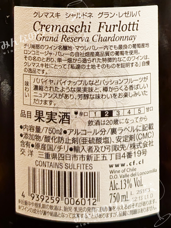 クレマスキ・シャルドネ・グラン・レゼルバ・2024 補足情報