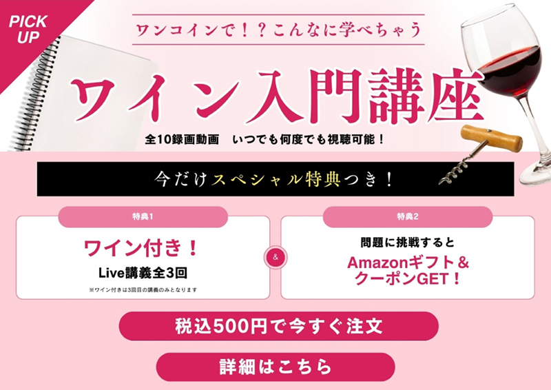 ワンコインで基礎から学べるワイン入門講座!ワイン付きのオンライン講座