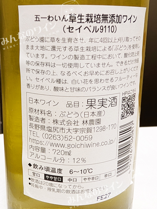 草生栽培・酸化防止剤無添加ワイン(セイベル9110・収穫2024年) 補足情報