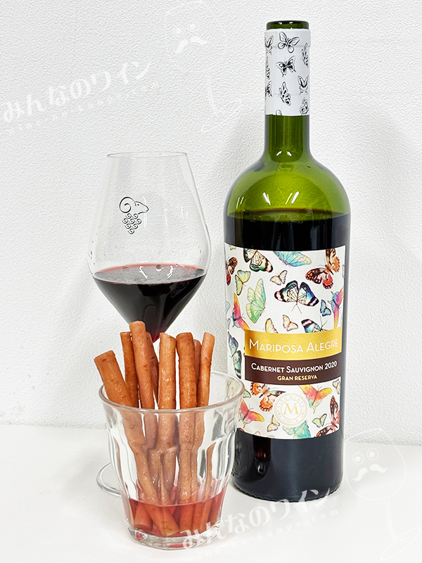 今回合わせたワインは、チリ産の赤ワイン「マリポーザ・アレグレ・リゼルヴァ・カベルネ・ソーヴィニヨン2020」。
