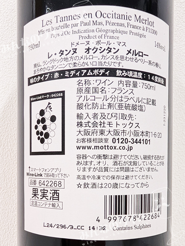 レ・タンヌ・オクシタン・メルロー・2023 補足情報